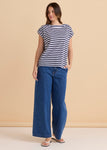 A lightweight jersey top with a flattering boat neckline. Cap sleeves create a polished yet relaxed look. Comfortable and easy to style for everyday wear. A classic staple with elevated simplicity.