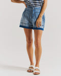 The Eddie Short combines the soft feel of knit denim with a mid-high rise fit for added comfort. Featuring an elasticated back waistband and a fly front, these shorts offer a polished look with an effortless feel.