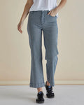The Willow Pinstripe Wide Leg pant offers a sophisticated yet relaxed look. With its zip and button fly front, classic 5-pocket detailing, and wide-leg fit, these pants elevate your casual wear with effortless chic. Ideal for warmer months or layered for cooler days. Pairs well with the cherry pinstripe shirt