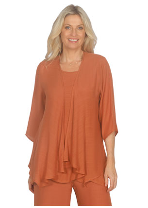The Breeze Crop Jacket combines sophisticated design with lightweight comfort, featuring a breathable breeze fabric ideal for transitional seasons. Its flattering 3/4 sleeves and elegant waterfall collar create a modern silhouette that drapes gracefully edge to edge. Perfect for layering, this jacket adds both style and versatility to your wardrobe, effortlessly enhancing casual or professional looks with refined ease.