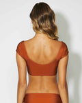 Our Hannah bikini top features a gathered drawstring panel at the front that can be adjusted to offer more coverage or gathered and drawn in for more shape at the front. Shoulders straps can be worn on or off the shoulder.