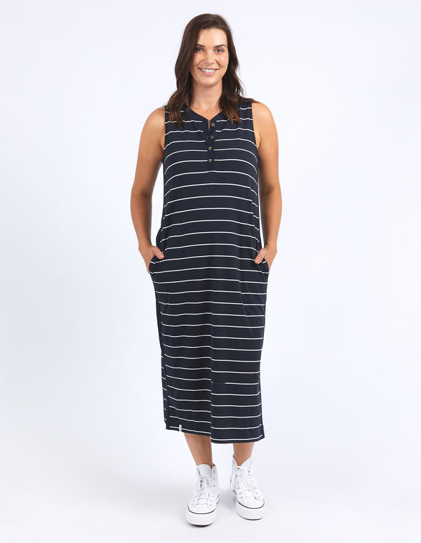 It's one piece that will guarantee you instant and effortless style every single time - meet the Elyssian Dress. A sleeveless tank dress featuring a button placket and canvas tape detail down side seams. Made with love from a cotton jersey material.