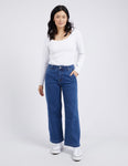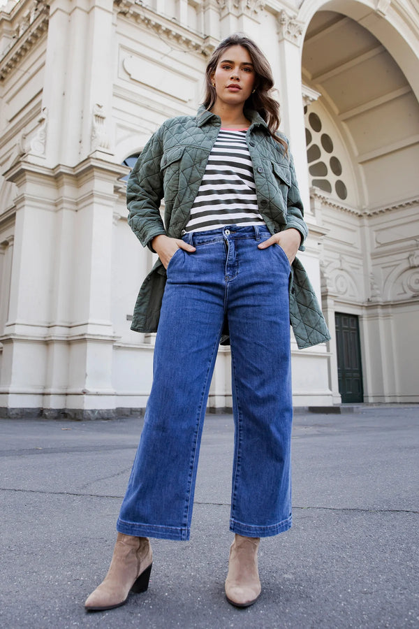 The Izzy Wide Leg Jean Is Casual And Fun. Made From Dark-Blue Stretch Denim These Jeans Feature A Wide Leg, Front & Back Pockets And A High Rise. These Will Be Your Favorite Jean From Weekday To Weekend!