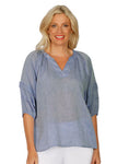 This playful linen blend top mixes 45% cotton with 55% linen for a breezy feel. Featuring a fun 3/4 sleeve and a cheeky V-neck, it’s perfect for adding a fresh twist to your wardrobe.