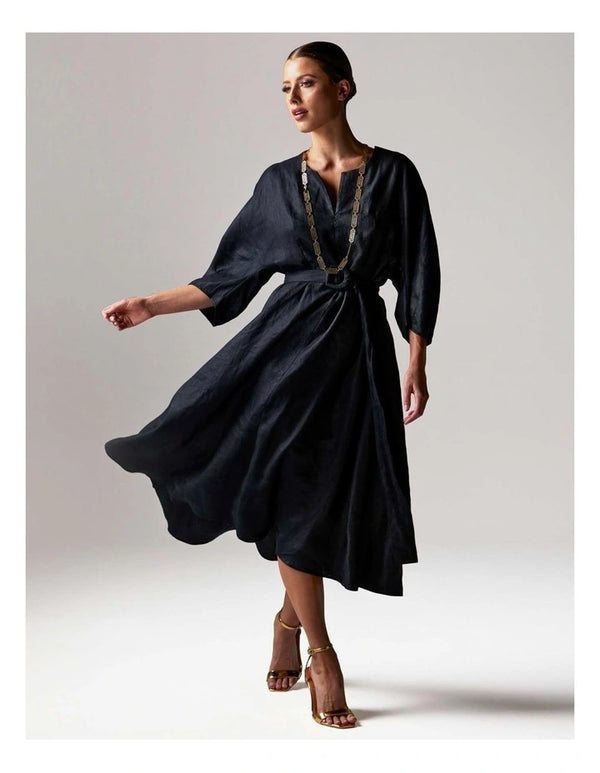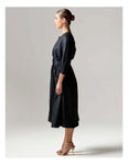 Embrace effortless elegance with the Fairfax Dress. Designed with a relaxed fit, this dress features 3/4 sleeves and a flattering deep notch neckline. The midi length enhances its sophisticated charm, making the Fairfax Dress a perfect choice for a refined yet comfortable look.