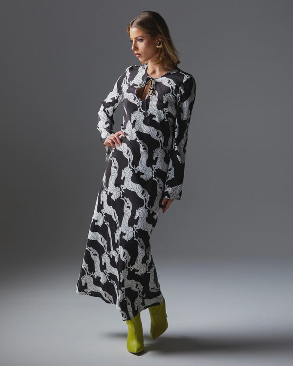 Discover the versatility and charm of the Perfect Match Bias Dress. This multi-wear piece features a chic cut-out with a tie and elegant bell sleeves, all in a flattering midi length. Whether you dress it up or down, the Perfect Match Bias Dress effortlessly combines style and adaptability for any occasion.