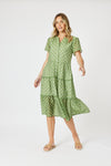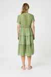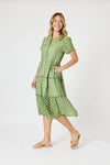 The Basil Spot Dress features a playful white spot print on a fresh basil green base in our signature Gordon Smith silhouette. Designed with short sleeves and a partial button-through...