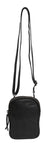 Crafted from genuine cow leather, this double zip pouch features a removable and adjustable strap for versatile wear. Measuring 12cm wide, 19cm high, and 3cm deep, it includes card slots and comfortably holds your phone and keys, combining style with practical convenience..