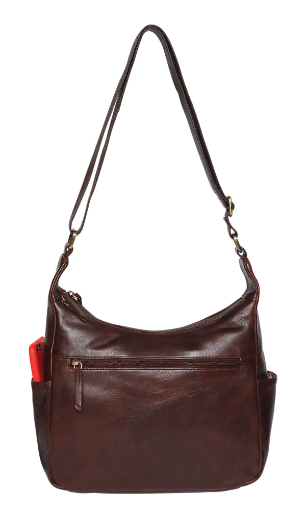 Made from soft leather, this crossbody/shoulder bag comes with two zippered pockets on the outside and two handy side pockets for quick grabs. It has two top zippers to keep your belongings neatly sorted. Inside, there’s a zippered section along with two pockets ideal for your phone and little extras. Sized at 25cm high, 29cm wide, and 10cm deep, it’s a fun and functional buddy for carrying your must-haves.