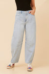 These denim pants bring a modern twist to a classic staple. Style them with a crisp shirt or casual tee and finish with sneakers or sandals for an effortlessly chic outfit!