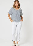 This playful 3/4 sleeve top brings together the natural comfort of cotton and linen with a fun layered design. Made from a soft cotton-linen blend, it features a charming printed...