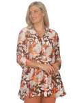 The Eliza print shirt features a sophisticated 3/4 sleeve design and a flattering swing-style tunic length that offers both comfort and versatility. Its button-through front and classic collar add a tailored touch, making it suitable for both casual and more polished looks. Crafted to provide ease of movement while maintaining structure, this shirt is an excellent choice for layering or wearing on its own throughout the seasons.