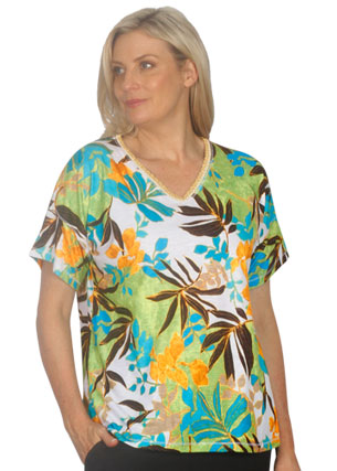 This print t-shirt features a flattering V-neck enhanced with subtle lurex trim for a refined touch of sparkle. Designed with short sleeves and side splits, it offers both style and ease of movement. Crafted from soft, breathable fabric, the t-shirt ensures all-day comfort, making it a versatile addition to any wardrobe that balances sophisticated detailing with practical wearability. Ideal for layering or wearing on its own, it combines a contemporary look with expert tailoring.
