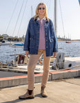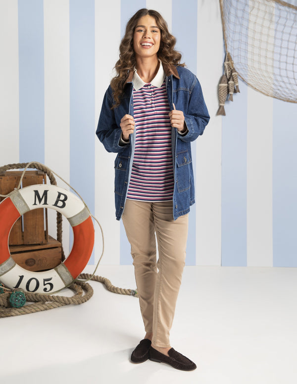 The Margo Jogger are a functional and fantastic stretch drill pant featuring a slim leg and comfort plus rib waist band with a cute ribbed stripe.