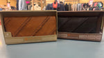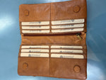 This vintage leather wallet brings a fun twist with its woven front panel design. It’s perfectly sized at 19cm by 10cm, featuring a handy external zip coin pocket for your loose change. With 12 card slots and extra space for notes, it keeps your essentials organised and ready to go. The magnetic closure adds a clever snap to keep everything secure while you’re out and about. Stylish, practical, and just a little bit cheeky.