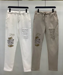 Sparkle and comfort collide in these playful printed pocket pants. Eye-catching foil print meets shimmering sequin details for a look that turns heads. The jogger-style cut with drawstring elastic waist keeps you comfortable, while four practical pockets mean you've got room for your essentials. Crafted from a soft 95% cotton and 5% elastane blend, they're stretchy enough to move with you all day. Perfect for adding a dash of fun to your everyday wardrobe.