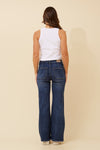 These boot cut jeans feature a relaxed leg shape and square pockets for added flair. Crafted from stretchy dark denim, they combine comfort with a timeless vibe.