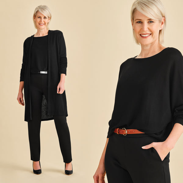- Made from a compact double knit stretch fabric that is soft against the skin.