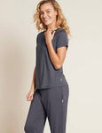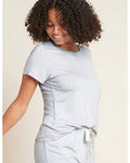 Soft stretch that follows your natural silhouette. Curved neck with a wide band for comfort. Short sleeves for a breezy feel. Slightly dropped shoulder line for a relaxed look. Curved...