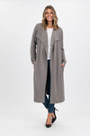 This sophisticated wool blend coat features an elegant long line cardigan silhouette with meticulous attention to detail. The distinctive cuffs are adorned with a refined strap and wooden button closure, adding an artisanal touch to this premium outerwear piece. The versatile edge-to-edge design is complemented by a flattering tie waist that creates a customizable silhouette. A thoughtfully designed collar frames the face beautifully while providing additional warmth. Crafted from a high-quality wool blend, this coat offers exceptional insulation with a luxurious drape and texture that maintains its structure throughout the day.
