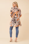 This longline button-up shirt pairs fabulously with tights or jeans for an effortlessly cool vibe. Featuring long sleeves and a fun mix of orange, brown, and white prints, it’s cut longer at the back for extra flair. Crafted from a soft polyester and silk blend, it’s as comfy as it is stylish.
