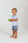 Get your little one covered in style and comfort with these shorts! They're a light-hearted addition to any wardrobe with 3 pockets for storing all sorts of treasures. The elastic and drawstring waist band ensures a snug fit for any activity.