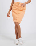 Reinvigorate a wardrobe staple with the bold Belle Denim Skirt from Elm. The perfect way to embrace this season's coloured denim trend, this must-have skirt is sure to be on high rotation. Crafted from comfortable stretch denim and featuring classic button and fly, five pockets styling and hitting just above the knee, this flattering skirt is as practical as it is stylish. Pair with a t-shirt and slides for a chic everyday look.
