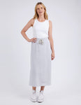 The Elm Travel Skirt Is A Maxi-Length Skirt Finishing Mid-Calf. It Is Super Comfy With A Relaxed Fit. Constructed In A Soft And Breathable Cotton Slub Fabrication It's The Perfect Style To Pack On Your Next Trip Or To Wear Casually throughout the entire year. The Travel skirt features include an easy to wear elastic waist and side split for movement.