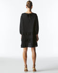The Midsummer Mini Dress brings playful sophistication with tiered ruffle details, a back neck tie, and a relaxed fit. Elasticated sleeves add a touch of easy elegance to this versatile piece.