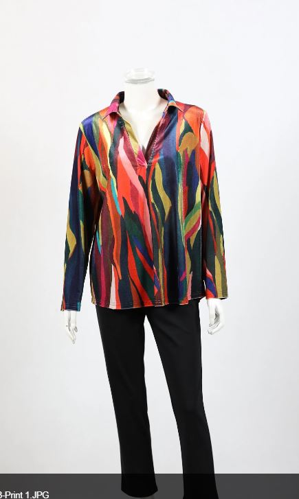 Add a touch of playful elegance to your wardrobe with this long-sleeve velvet top. Featuring a flattering V-neck and collar, its soft polyester-elastane blend ensures comfort and stretch. The scalloped bottom adds a fun, feminine twist that makes this top perfect for both casual days and chic nights out.