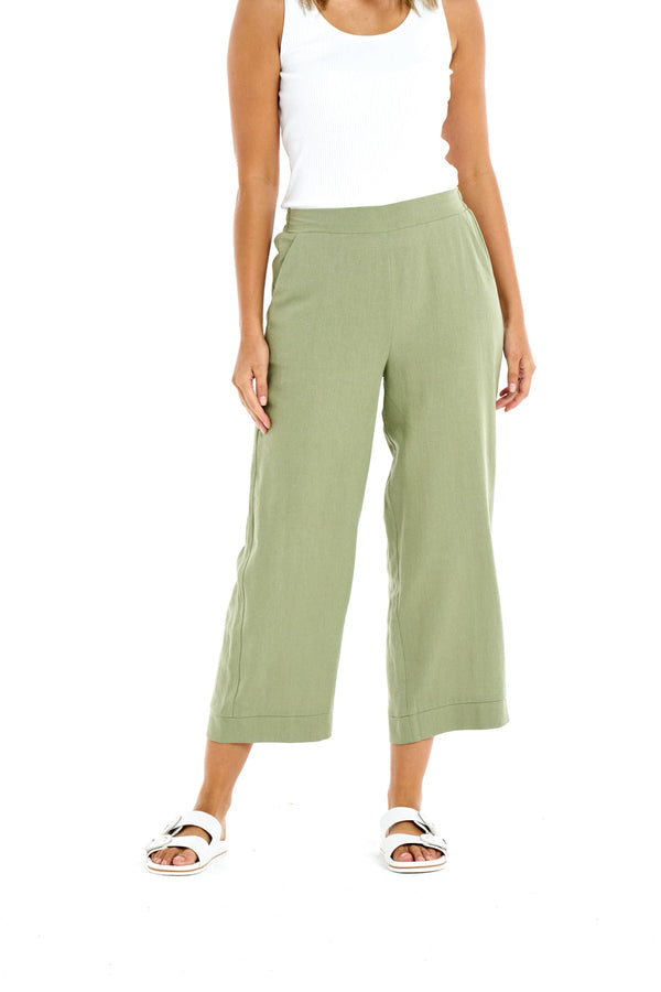 Experience style and comfort like never before with the Parker Pant! Designed with a mid-high rise fit that flatters, these pants offer both fashion and ease. The cut-away pockets and crop length add a touch of uniqueness to your look. The flat front waist combined with an elasticated back ensures a perfect fit that's as comfortable as it is chic. Elevate your wardrobe effortlessly with the Parker Pant and step into a world of fashion-forward relaxation today!