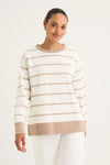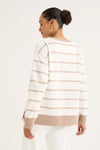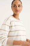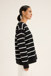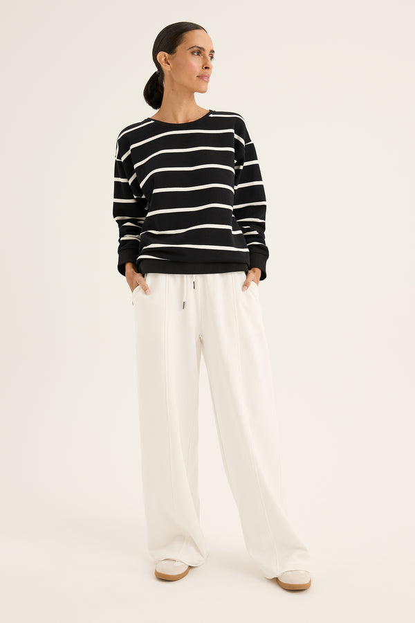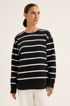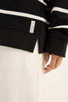 The Infinity Sweat is a classic by its stripe design. Featuring the round neckline and long sleeves ensure its timeless profile. With the side split and the relaxed fit, it offers the ease of movement. Effortlessly style it with any of your favourite bottoms for the chic and fun twist outfit this winter. Pic is illustration only, colour available is black with ecru stripe.