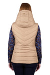 Water repellent fabric, unique quilting design at front and back, Thomas Cook hand drawn digital PRINTS lining, rust proof metal accessories, premium quality zip closures, detachable hood, front zip pockets, storm flap, quilted waist shaping to flatter the figure, TC internal trims and pockets, horseman embroidery on chest.