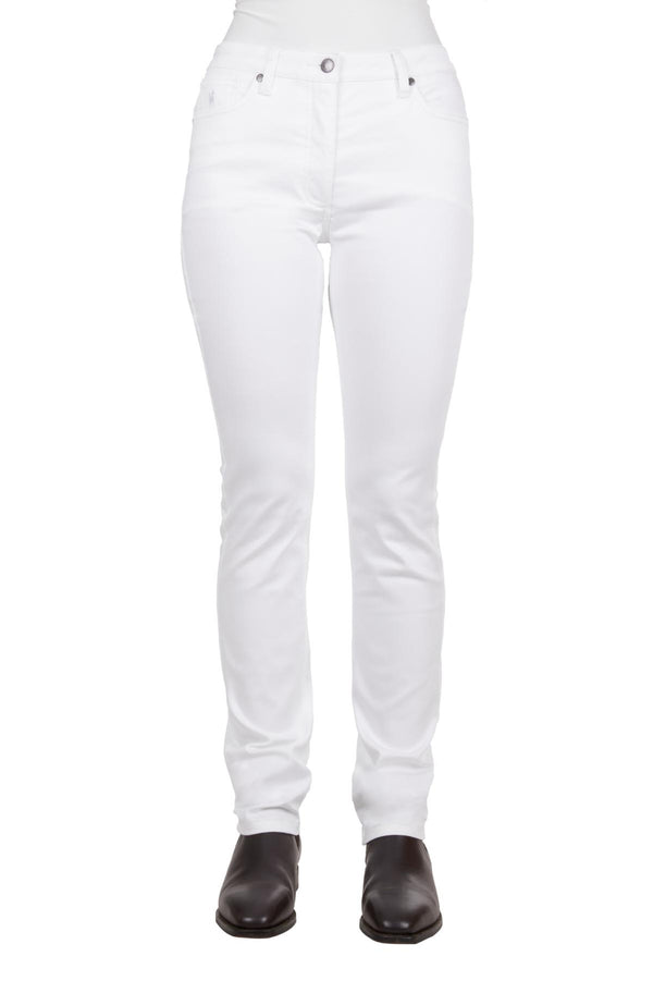 Stretch for comfort and movement, slimmer leg fit, no-gap elastic waistband, secret hidden panel flattens your tummy to give you a slimmer silhouette, clever seaming to sculpt and lift your bottom, rust proof metal accessories, YKK zipper.