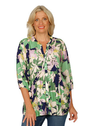 Add a fun twist to your wardrobe with this playful 3/4 sleeve shirt featuring a charming baby doll pleated front. Made from soft, breathable 100% viscose, it offers comfort and style all day long. The button-down front adds a touch of classic flair perfect for any casual outing.