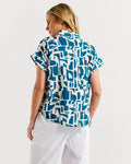 The Flores Blouse in a viscose/linen blend pairs a cuffed short sleeve with a collared neckline and front v-drop. Its curved hem provides an elevated touch, making this an essential for easy, polished style.
