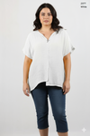 This charming 3/4 sleeve top blends breathable cotton and linen for all-day comfort with a relaxed fit that moves with you. The self-lined fabric adds a polished touch without bulk, making it perfect for any occasion. A playful highlight is the detachable rose gold brooch, letting you customize your look—wear it classic or sparkly, your choice! Easy to style and effortlessly chic, this top brings a fresh, fun vibe to your wardrobe. Pairs perfectly with pant 2382.
