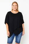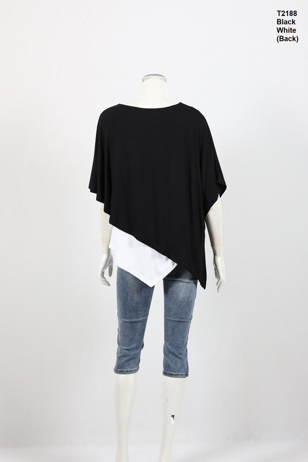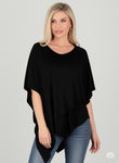 This bamboo layered top features a sophisticated cape-style diagonal crossover layer that adds depth and visual interest to a relaxed, comfortable fit. Crafted from breathable bamboo fabric, it ensures softness and natural moisture-wicking properties for all-day comfort. The round neckline provides a classic finish, making this piece versatile for both casual and refined outfits. Its unique layering enhances movement and style while maintaining effortless wearability. Ideal for those seeking sustainable, elegant wardrobe staples with expert attention to detail and quality.