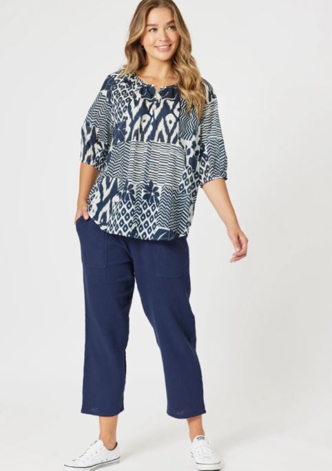 Add a splash of fun to your wardrobe with this 3/4 sleeve shirt! Featuring a button-through front and a wired collar that keeps its charming shape, it’s perfect for stylish...