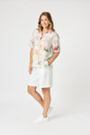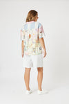 Bursting with vibrant illustrations and travel-themed motifs, this shirt pairs effortlessly with shorts, linen pants, or the matching Capri Print Pant for a coordinated statement look.