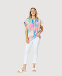 Introducing the Threadz brand, featuring a relaxed fit style that will keep you comfortable all day long. The detailed button placket and action back pleats add a touch of sophistication to this must-have top. 100% cotton. Watercolor print.