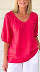 Features: Relaxed and effortlessly polished - the Lino V-Neck Top is crafted from a lightweight linen blend that’s perfect for warm days and easy layering. Featuring a soft gathered V-neckline, elbow-length...