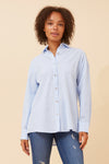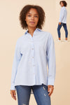 Bring fun into your wardrobe with this long sleeve stripe shirt featuring a playful curved hemline for a flirty twist. Crafted from a soft blend of 70% cotton and 30% polyester, it offers comfort and easy care to keep you moving all day. Perfect for mixing and matching, this shirt adds a cheerful pop of pattern to any outfit.