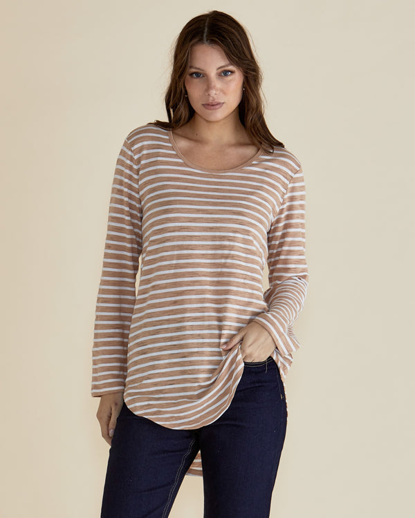 The Megan Long Sleeve Tee from Betty Basics is an all time fan favourite! Loved for its relaxed fit and effortless style, this classic features a flattering scoop neck and long sleeves, perfect for any season. The curved hem at the front and back adds a playful touch, ensuring you stay stylish and comfortable. Ideal for layering or wearing on its own, the Megan Tee is a timeless and versatile wardrobe staple you’ll reach for again and again.