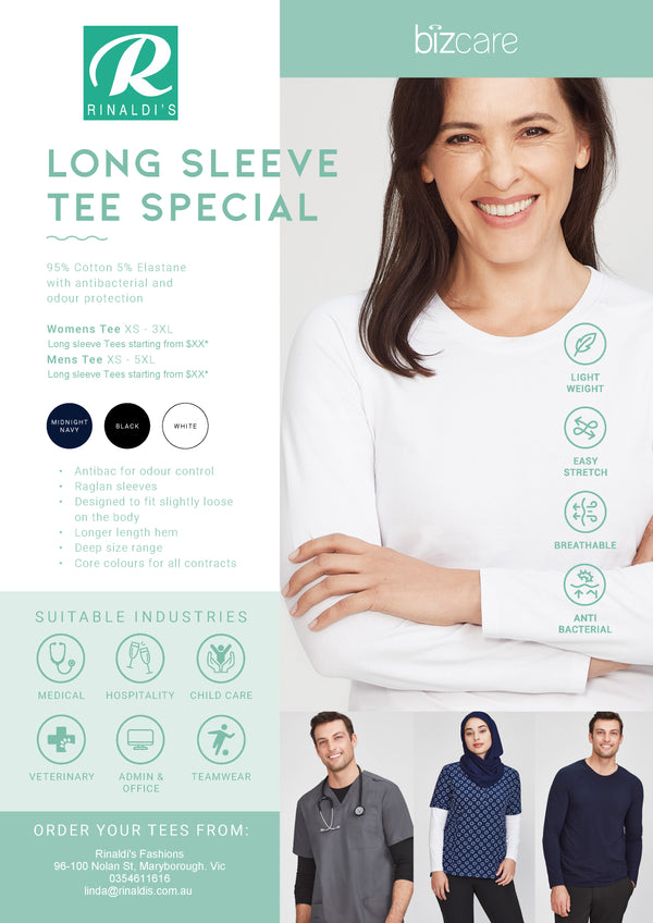 Sizes   XS – 3XL. Fabric - 95% Cotton, 5% Elastane with antibacterial and odour protection. Features - The perfect Tee that can be worn as under-scrub or on its own. - Made from...