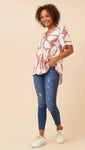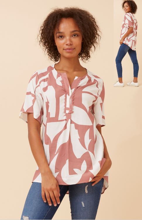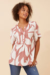 Style for comfort and fun with our abstract print blouse! Easy to pair with jeans and sandals for an everyday look or wear with workwear pants for a polished office look!