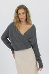 Pretty ballet-style, faux wrap knit top.