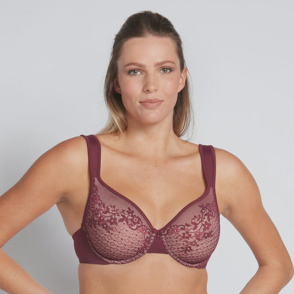 Combining elegance and support, the Smooth Lace Underwire bra in rich Grapewine colour, looks and feels gorgeous