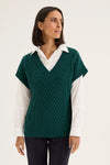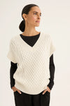 The Glace Vest is a perfect blend of sophistication and comfort to any winter wardrobe. Crafted from a Wool blend for warmth and durability, the unique cable knit pattern enhances its texture and visual appeal. V-neckline and extended short sleeves ensure the sleek design overall. Complete a stylish ensemble by layering it over the shirt and wide-leg chino, or with our Ice Layer Tee and Vine jogger for a chic and fun winter look.