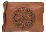 This vintage leather wristlet, featuring a charming woven front, measures a handy 22cm wide by 16cm high—perfect for carrying your essentials with style. Inside, you'll find a zip pocket to keep your valuables safe and card slots to keep you organized on the go. Compact yet clever, it’s the playful companion your outfit’s been waiting for!